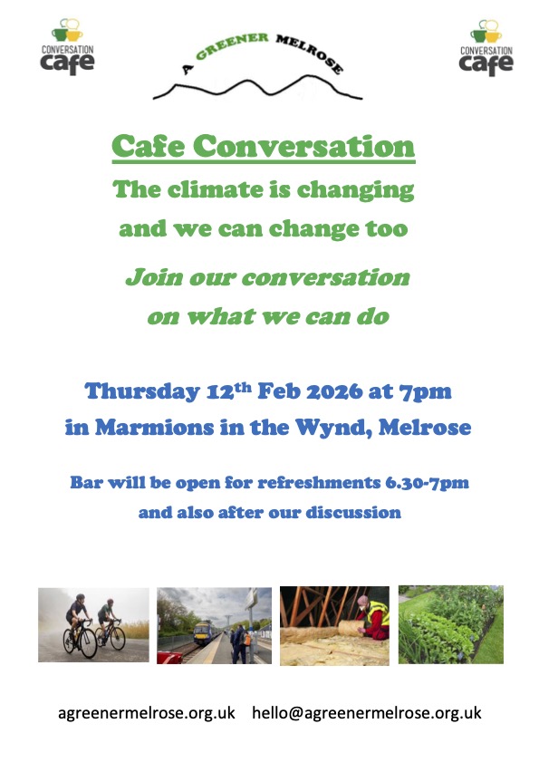 On 12 February we will be holding the first in a series of evening Café Conversations at Marmions in the Wynd in Melrose, starting 7pm (bar open before the event only, between 6:30 – 7:00pm).
